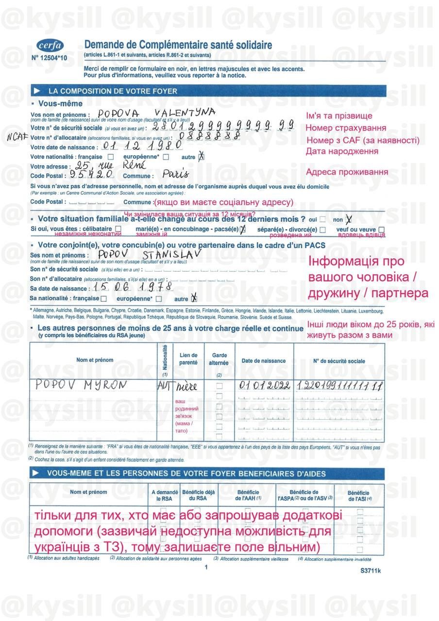 - якщо ви маєте право, надішліть запит за допомогою в CPAM цієї форми : українською мовою тут. російською мовою тут